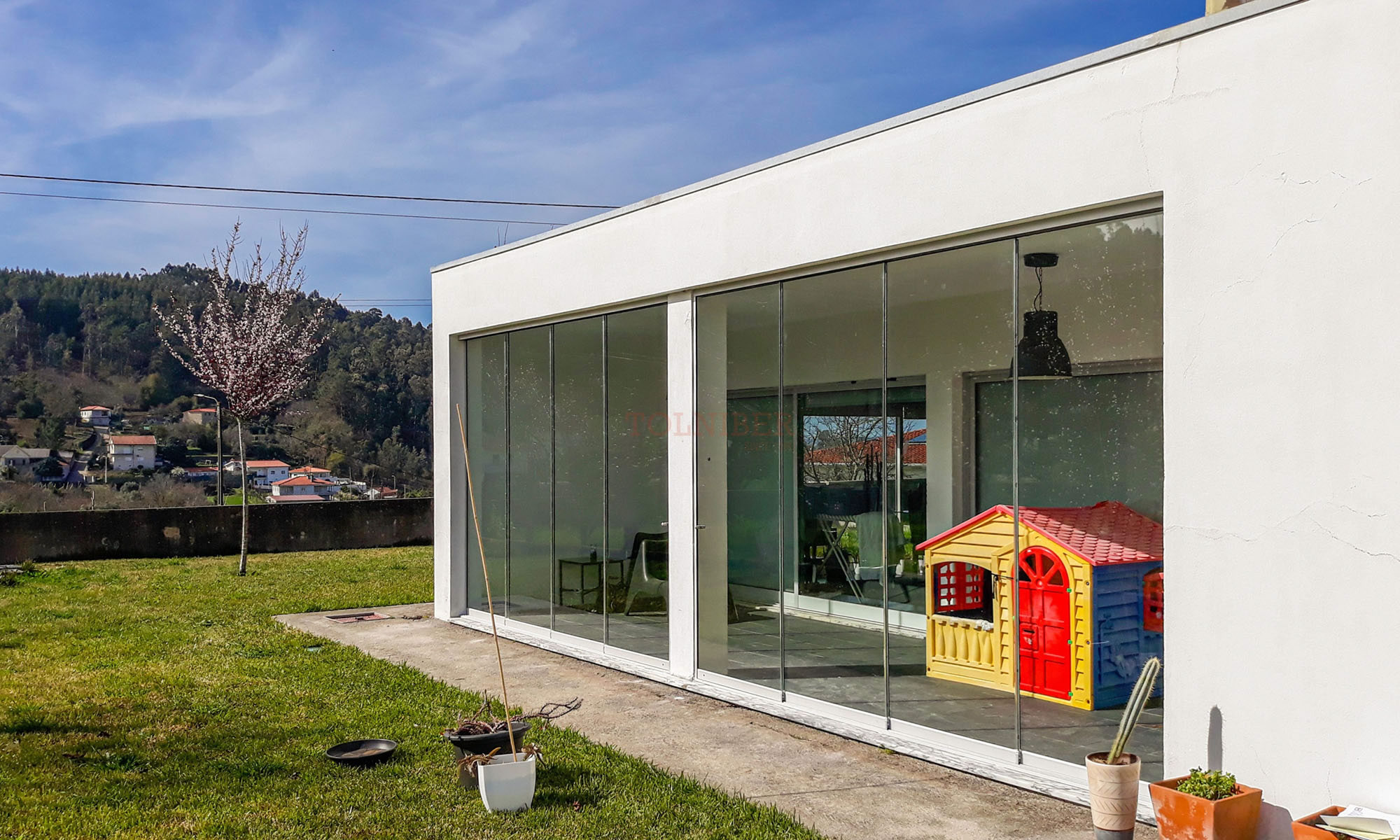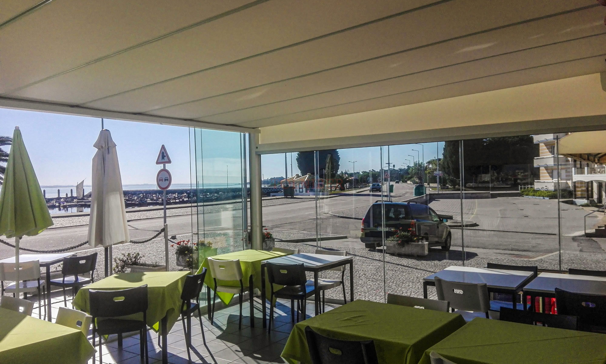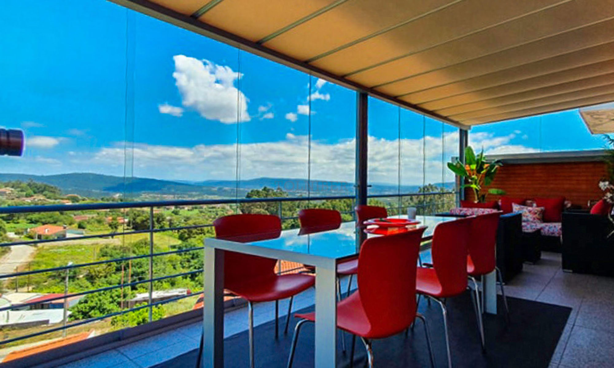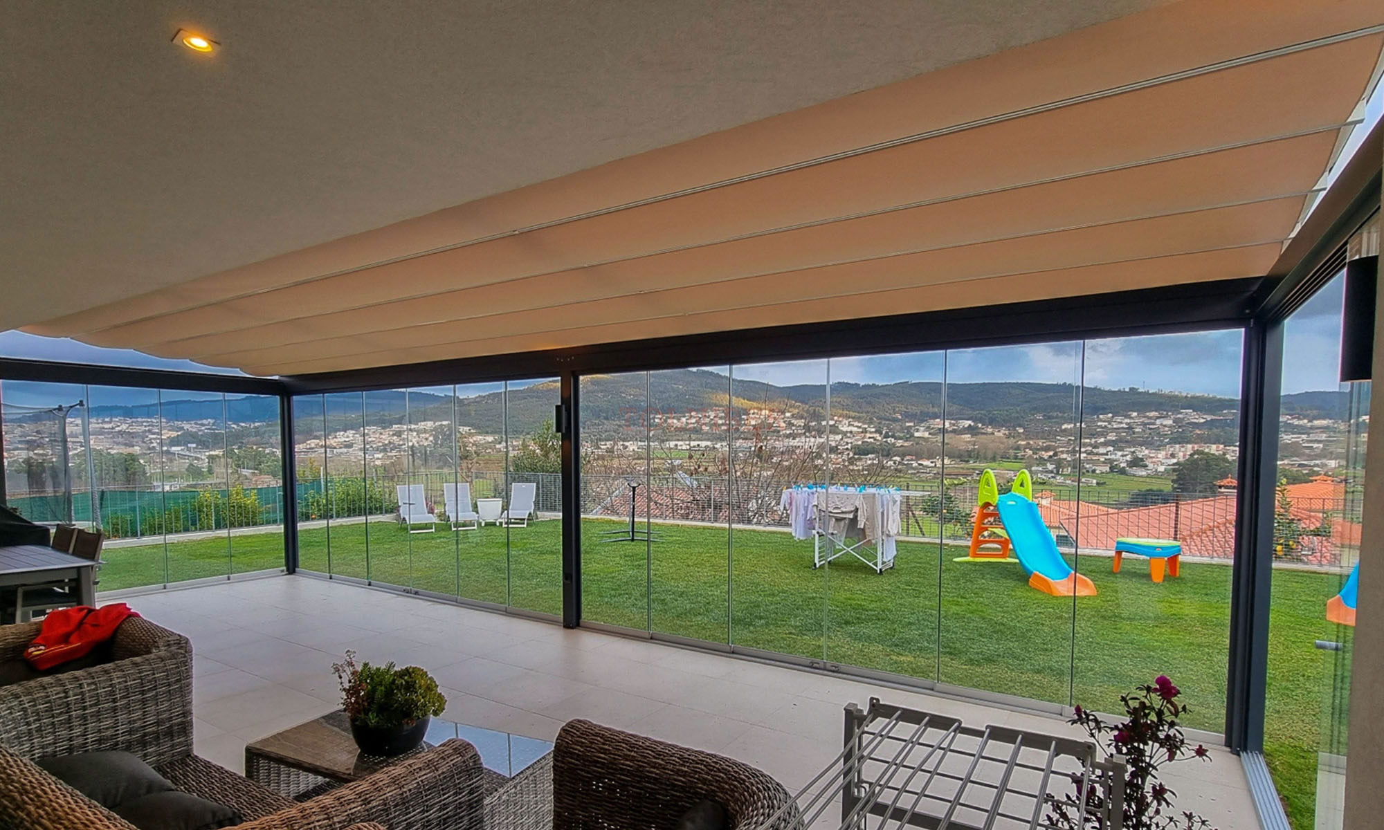 Modelo composto por cortinas de vidro deslizantes, que protegem os espaços contra ventos e chuva. Enquadra-se em esplanadas, pérgulas e alpendres, pois permite a passagem de luz solar e a visibilidade da paisagem envolvente.