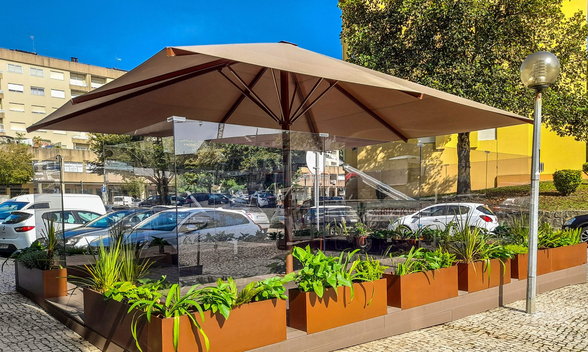 Para espaços de grandes dimensões. Trata-se de um upgrade do modelo Shadows, para poder ser aplicado a esplanadas e terraços de grande dimensão, garantindo o minimalismo e as linhas retas que a gama representa.